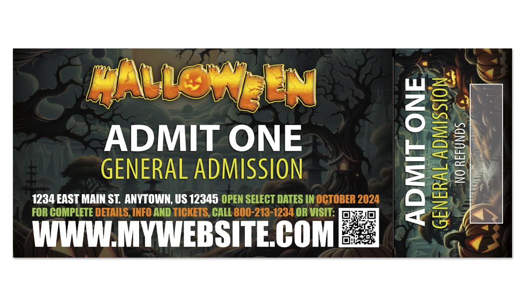 Place an order – Once you place an order, we will design your Haunted House Tickets, according to the information provided, within 1 business day Monday to Friday. Excluding holidays.